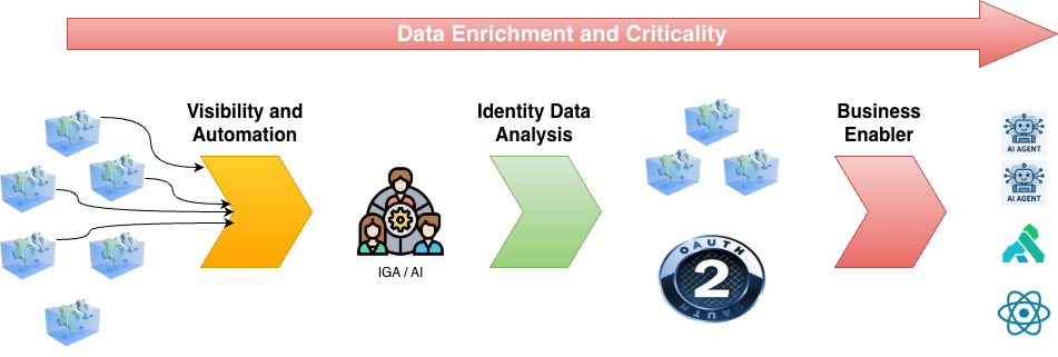 - Visibility and Automation: Look at the application environment and business policy. How are you aggregating target applications, making decisions on access and outcomes? Do you have all the applications in your IGA? Do you need to look at emerging technology like Agentic IGA to augment and enrich existing IGA platforms? Important thing here is to allow your AI (in bucket 2) to have the complete picture so can perform the analysis it needs.